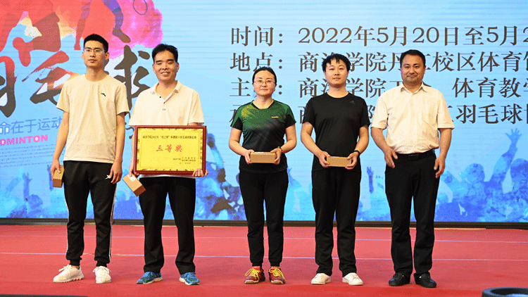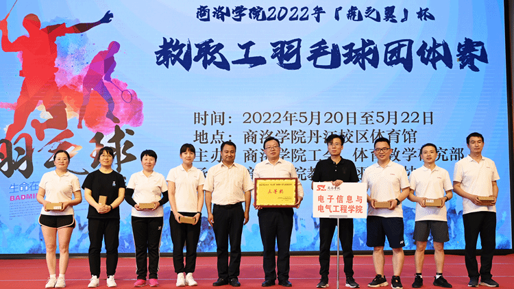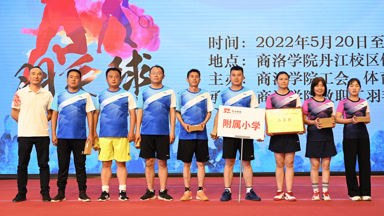 5月20-22日,由校工会、体育教学研究部主办,教职工羽毛球协会承办的2022年“虎之翼”杯教职工羽毛球团体赛在丹江校区体育训练馆举行。校党委副书记、工会主席彭虎军,商洛市“虎之翼”科技有限公司总经理刘珺,88038威尼斯附属小学副校长白锋军出席颁奖仪式并为获奖代表队颁奖。