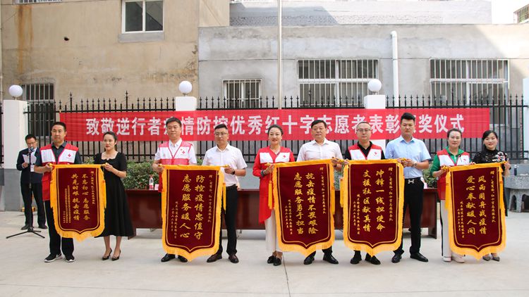 近日,商洛市委宣传部、市文明办和商洛市红十字会联合举办致敬逆行者疫情防控红十字会志愿者表彰大会。市委宣传部副部长、市委文明办主任李丹峰,市红十字会常务副会长樊建真、市纪委监委驻人大常委会机关纪检监察组四级调研员朱艳琳,商州区新时代文明实践中心主任张西锋出席大会。我校教师刘霞、学生石含玉被评为优秀红十字志愿者,张坡社区向刘霞所在的“爱商洛”红十字志愿服务队赠送了“风雨同舟战疫情 爱心奉献暖人间”锦旗,石含玉作为优秀志愿者代表发言。