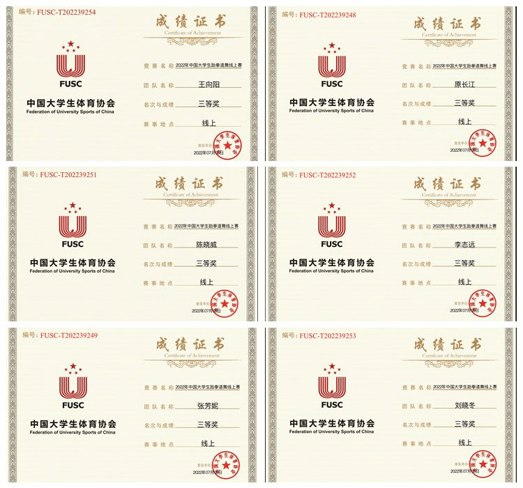 近日,由中国大学生体育协会主办,中国大学生体育协会跆拳道分会执行,中国地质大学(北京)承办的2022年中国大学生跆拳道舞线上赛圆满落幕。经过与来自厦门大学、北京交通大学、中国地质大学、西安电子科技大学、成都体育学院等全国47所高校,54支代表队激烈比拼,我校获三等奖。