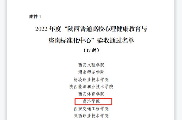 日前,中共陕西省委教育工委公布了陕西普通高校心理健康教育与咨询标准化中心建设项目的验收结果(2022年度)。我校心理健康教育中心顺利通过验收,获批“陕西普通高校心理健康教育与咨询标准化中心”。