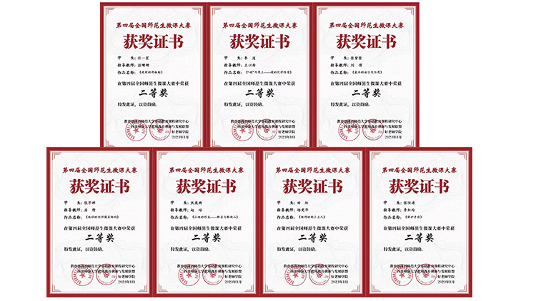 近日,第四届全国师范生微课大赛结果公布。我校师生获得各类奖项13项,其中学生荣获特等奖1项、一等奖2项、二等奖8项,人文学院乔金果老师荣获优秀指导教师,学校荣获优秀组织单位奖。这是我校参与此项赛事以来首次荣获优秀组织奖,实现了学校集体奖、学生获奖等级和获奖总数多项突破。