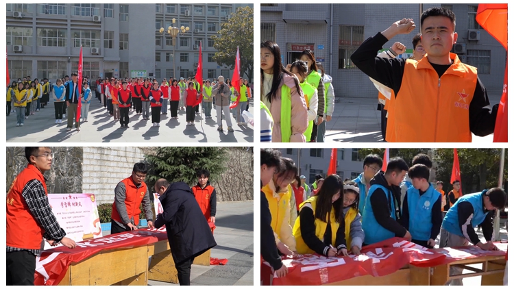 在王攀的带领下,我校青年志愿者积极在横幅上签名,抒发自己坚定理想信念、投身强国伟业,传承弘扬雷锋精神,不断增强志愿服务意识,为中国式现代化建设贡献青年力量的信心和决心。