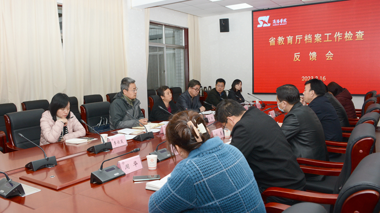 3月16日,省教育厅办公室调研员、省高教系统档案学会副理事长王瑛一行6人莅临我校检查指导档案工作。党委副书记彭虎军主持检查汇报会并在意见反馈会上作表态发言。检查组通过实地查看、听取汇报及现场查阅资料对学校档案工作进行了检查和指导。