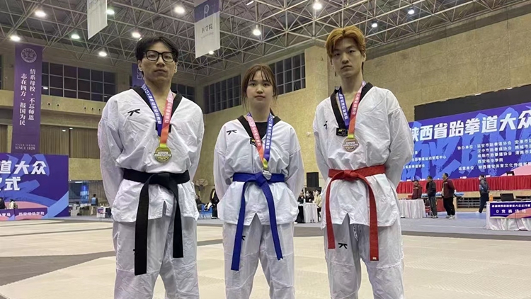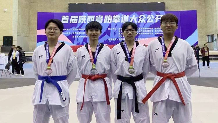 3月19日,由陕西省体育局主办,陕西省拳击跆拳道运动管理中心和陕西省跆拳道协会承办的陕西省大众跆拳道公开赛圆满落幕。我校荣获“体育道德风尚奖”,体育教学研究部教师桑国鹏和张丹生被评为“优秀教练员”,数计学院数学2102班刘晓冬获65kg组冠军,化材学院材料1901班原长江获68kg组亚军,经济管理学院电子商务2111班姚垭霖获女子58kg组亚军,健康管理学院营养2201班孙银多获46kg组亚军,艺术学院音乐2231班李夏漪获50kg组季军,经济管理学院文化2201班徐光仁获59kg组季军。