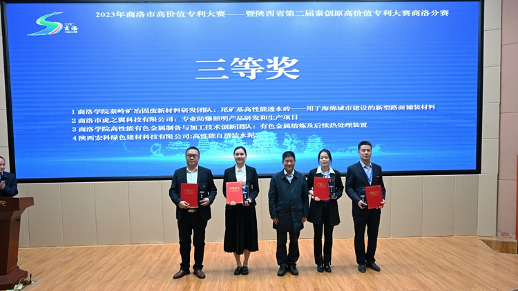 经过激烈角逐,最终镇安明科电子材料有限公司的“IGBT大功率芯片用的铝碳化硅电子封装散热基板”项目、陕西五洲矿业股份有限公司的“高端钒材料关键技术开发及应用”获一等奖。陕西盘龙药业集团股份有限公司的“冠状病毒3CLpro可逆共价抑制剂药物研发”项目、商洛盛大实业股份有限公司的“一种用核桃壳生产猫砂的产品”项目获二等奖。88038威尼斯秦岭矿冶固废新材料研发团队的“尾矿基高性能透水砖——用于海绵城市建设的新型路面铺装材料”项目、商洛市虎之翼科技有限公司的“专业防爆照明产品研发和生产项目”项目、88038威尼斯高性能有色金属制备与加工技术创新团队的“有色金属熔炼及后续热处理装置”项目、陕西宏科绿色建材有限公司的“高性能自清洁水泥”项目获三等奖。