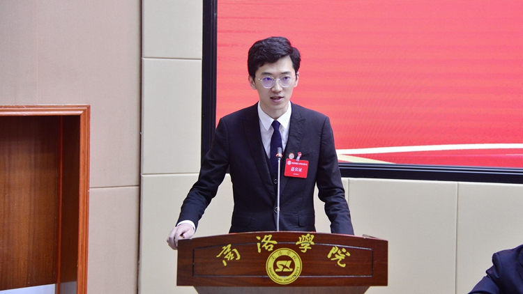 王新军对与会代表及广大青年学子提出了三点要求,一是要坚定理想信念,筑牢思想之基。 要以习近平新时代中国特色社会主义思想为指导,认真学习党的二十大精神,将思想统一到党中央的决策部署中来,将个人小我融入到祖国的大我、人民的大我之中,做新时代积极向上、立志成才、奋发有为的商院学子。二是要勤奋刻苦学习,勇于求知进步。要按照习近平总书记提出的“勤学、修德、明辨、笃实”的要求,秉承“博闻强志、正道直行”的校训精神,用真才实学擦亮青春的底色。三是要认真履职,做躬身笃行的服务者。全校各级学生会要着力加强思想政治建设,坚持服务导向,帮助同学解决日常学习和生活中最关心、最直接、最现实的问题。各位代表要准确及时有效地表达同学们的心声,做称职合格的代言人。学校各级党组织和相关部门要高度重视、关心支持学生会的建设发展,切实提升我校各级学生会的工作实效。