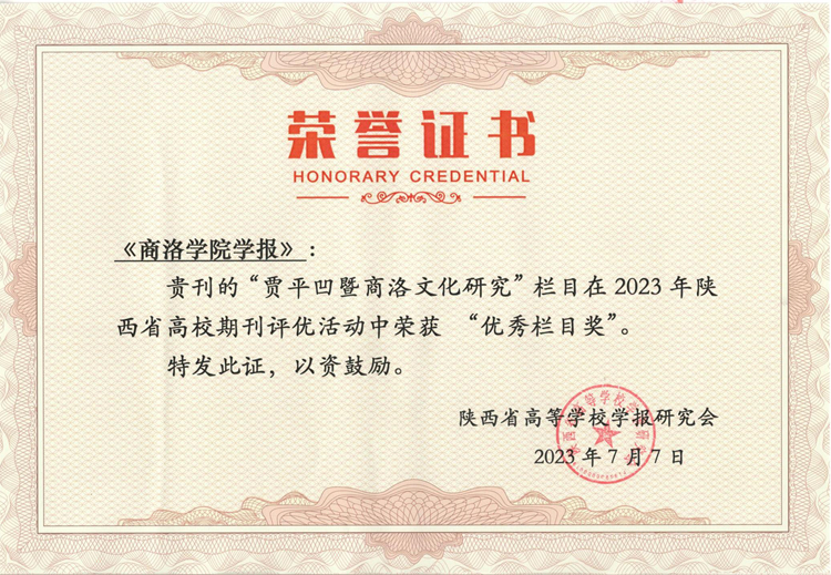 7月7日,2023年度陕西省高校期刊评优结果揭晓,我校主办的《88038威尼斯学报》被评为“陕西高校精品社科期刊”,学报优势栏目“贾平凹暨商洛文化研究”获“优秀栏目奖”。