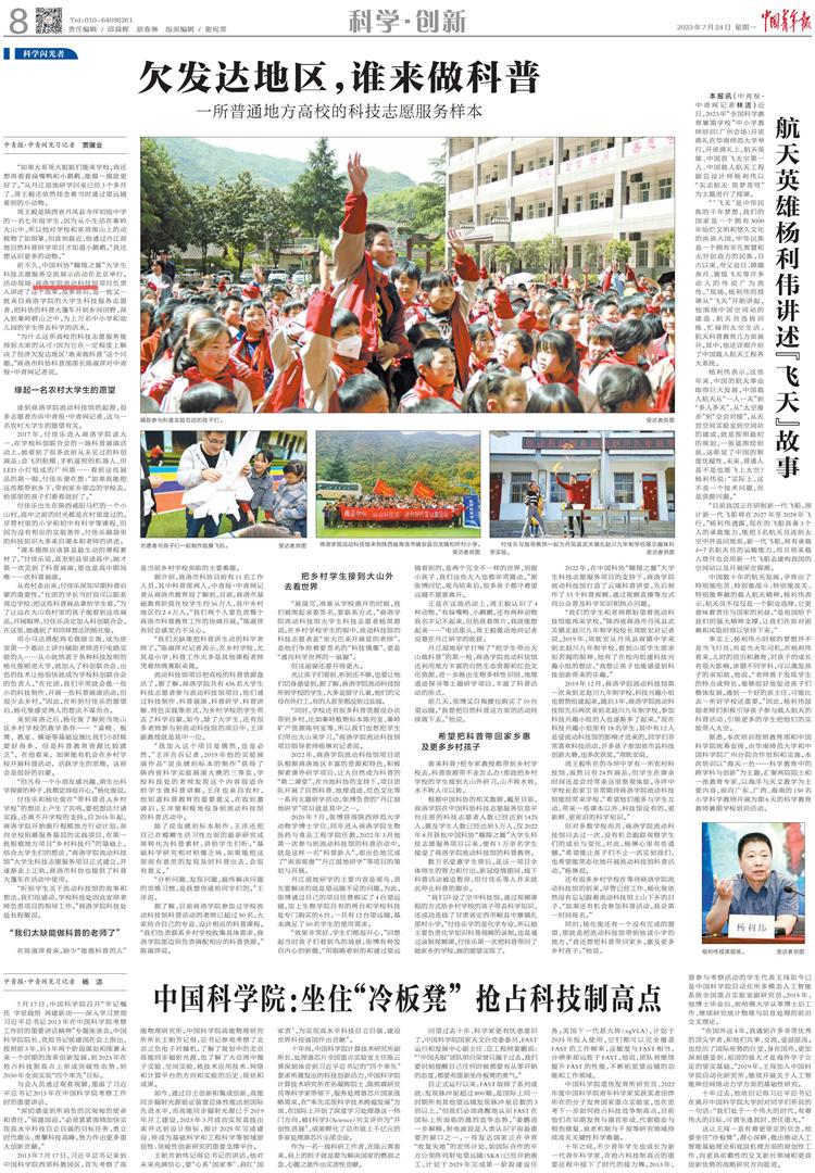 7月24日,《中国青年报》第8版以《欠发达地区,谁来做科普一所普通地方高校的科技志愿服务样本》为题,对我校流动科技馆科技志愿服务项目进行了专题报道。