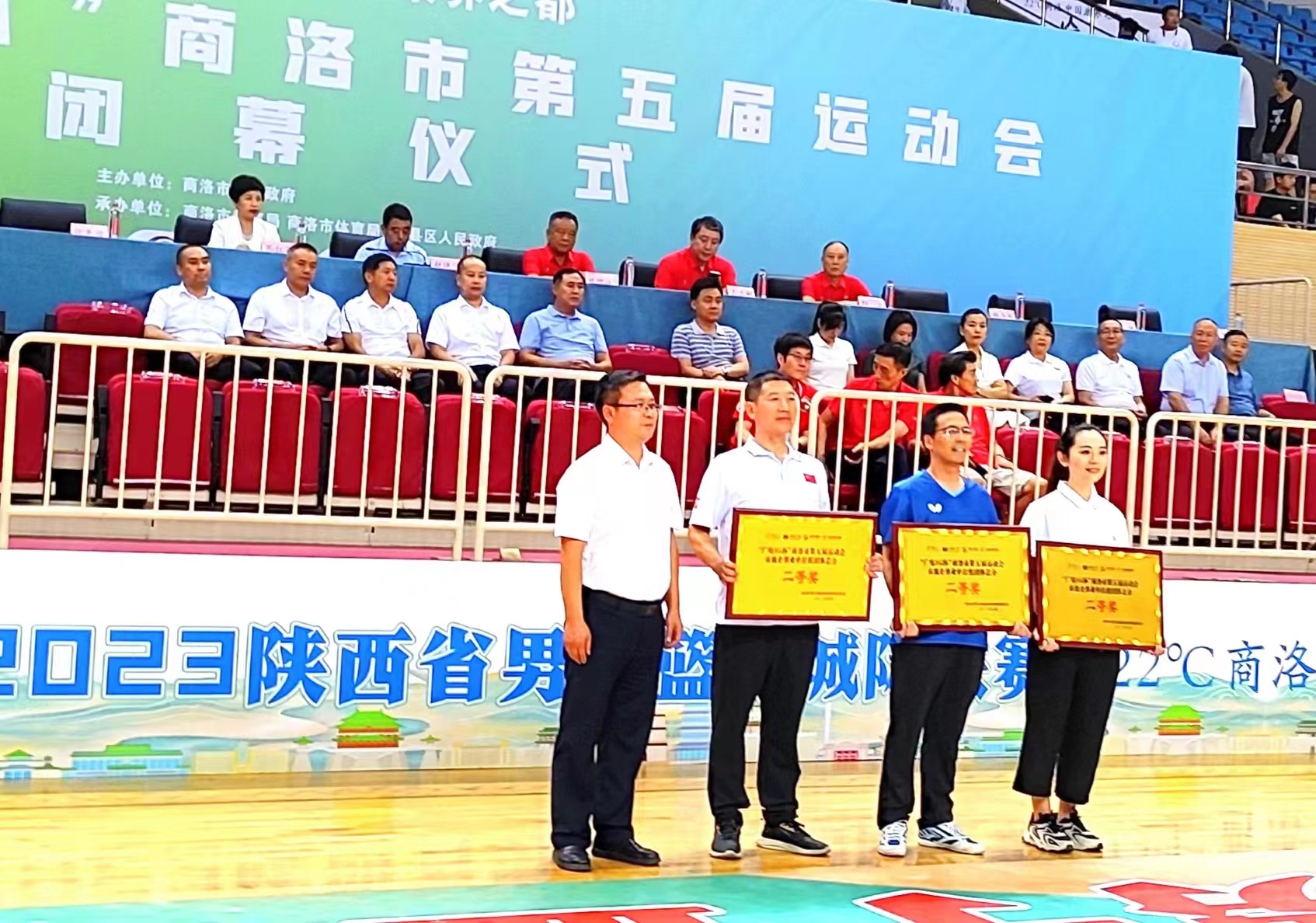 8月18日,商洛市第五届运动会闭幕式在市体育馆举行,副校长刘宝盈出席。大赛组委会通报了比赛成绩并为获奖代表队颁奖。我校荣获企事业单位组团体总分二等奖受到表彰。