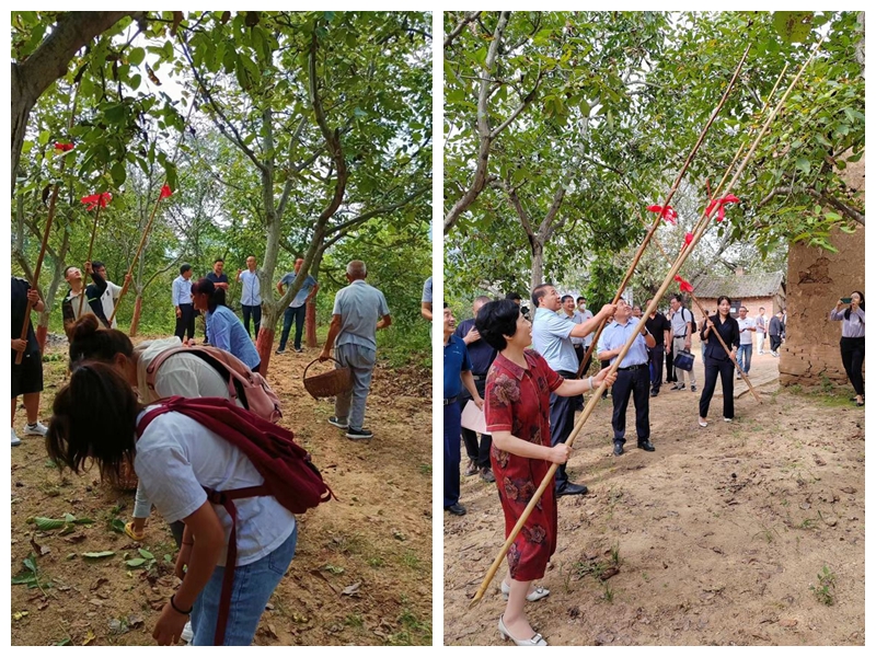 9月8日,第八届商洛核桃开杆节在商洛市商州区陈塬街道办事处上河村百年老核桃树下举行。商洛市政府副市长、民进商洛市委会主委苏红英出席并宣布第八届商洛核桃开杆节开杆。我校副校长王新军出席活动。科技处负责人、健康管理学院秦岭健康养生产教融合根植地方服务团队、经济管理学院商洛直播产业研究院师生参加活动。
