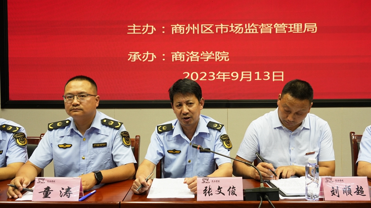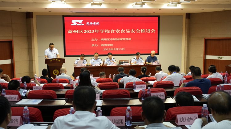 为进一步排查学校食品安全风险隐患工作,有效预防食品安全突发事件发生,9月13日,商州区2023年学校食堂食品安全工作推进会在我校召开。商州区市场监督管理局党组成员、副局长张文俊,我校后勤保障处处长刘顺超出席会议。商州区市场监督管理局、商州区科技和教育体育局相关人员,商州区各学校、各镇(办)中心校分管食品安全工作人员,我校后勤保障处相关工作人员及各食堂、超市负责人参加会议。会议由商州区市场监督管理局餐饮股股长谢璐主持。