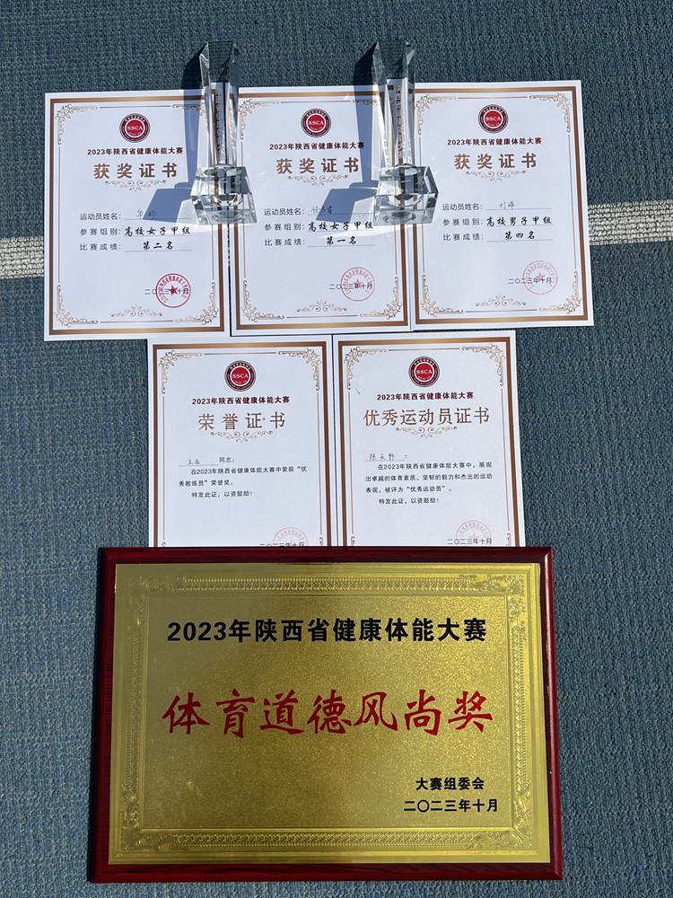 10月20日至22日,2023年陕西省健康体能大赛在西安举行。共有来自省内各高等院校、中小学、幼儿园及健身俱乐部700余名运动员参加。经过激烈的比赛,我校学生徐彦睿获得高校甲组女子第一名,华珍获得高校甲组女子第二名,刘峰获得高校甲组男子第四名,陈天野获优秀运动员称号,体育教学研究部教师王品获优秀教练员称号。