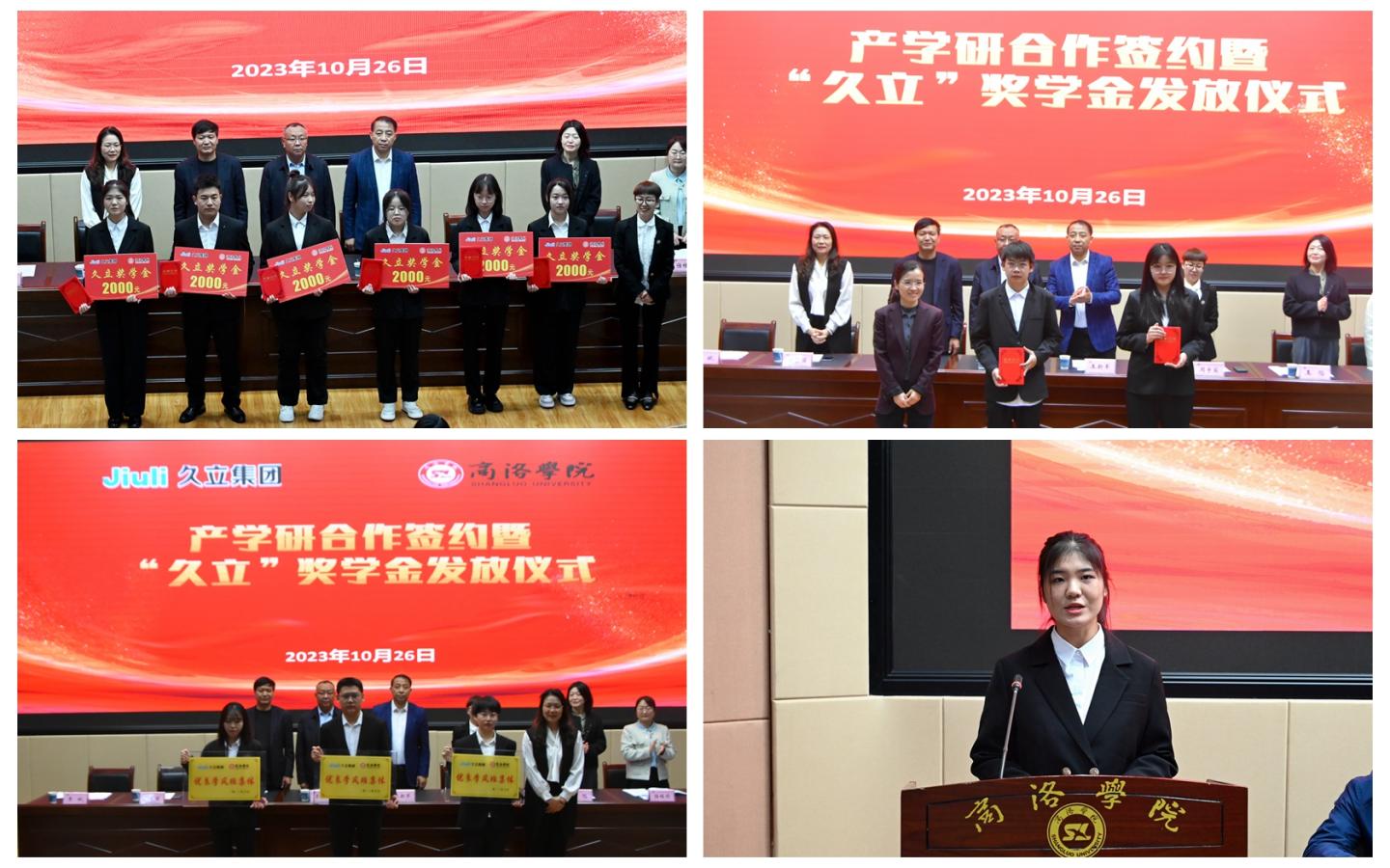 获奖学生代表、材料2102班学生胥思雨作了表态发言。四名已签约久立集团并获得奖学金的2024届毕业生通过视频为母校送上“生日”祝福和获奖感言。