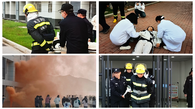 11月8日,在第32个全国消防日来临之际,为进一步增强师生消防安全意识,提高广大师生风险防范意识和自救互救应急能力,我校在丹江校区举办“预防为主 生命至上”火灾应急疏散与救援演练活动。保卫处、后勤保障处、丹江校区管理处、电信学院相关负责人,商洛高新区消防救援大队工作人员及丹江校区部分师生400余人参加活动。