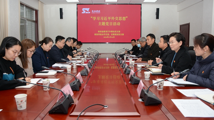 活动期间,全体党员集体参观了商洛红色文化资料馆,从商洛革命斗争的辉煌历史中感悟先辈们的崇高精神,传承红色基因,汲取奋进力量。文通传达了中央外事工作会议精神。省教育厅外事处副处长、支部党员张亮领学了《中共中央宣传部、外交部关于认真组织学习<习近平外交思想学习纲要>的通知》文件精神,省教育厅外事处二级主任科员、支部党员赵家悦领学了《习近平外交思想学习纲要》相关篇目。全体党员同志认真听取了我校马克思主义学院杨增强教授以《习近平外交思想管窥》为题讲授的党课。