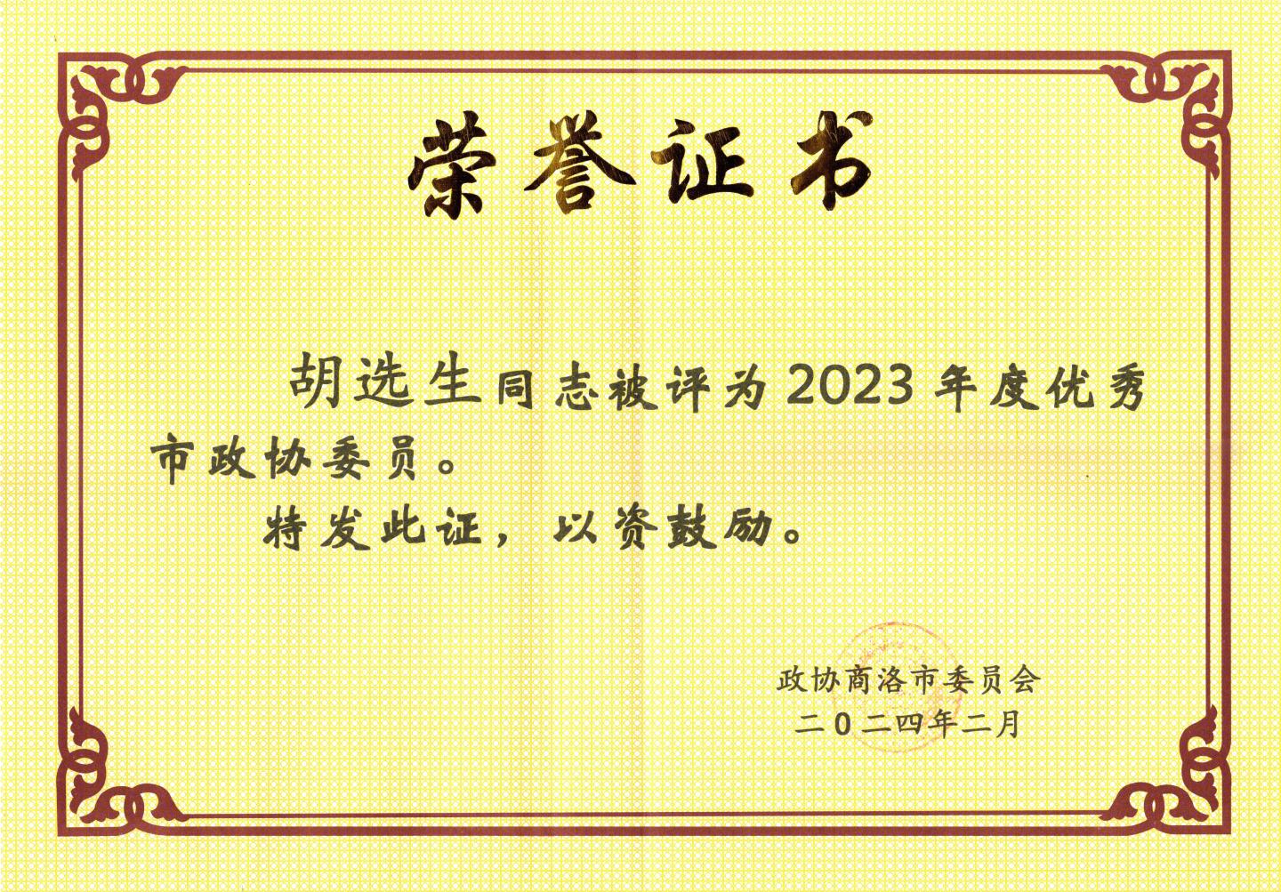 2月3日下午,中国人民政治协商会议商洛市第五届委员会第三次会议在商州闭幕。会议通报表彰了2023年度优秀市政协委员,我校生物学院胡选生博士被评为“2023年度优秀市政协委员”。