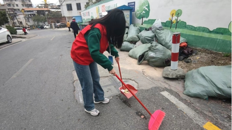 负责清理垃圾的实践队员身着红马甲,手拿扫帚、垃圾袋等清洁工具,秉持着“不漏掉任何一个死角”的原则,对小区路面、绿化带内的白色垃圾、杂草枯树枝等全面清除打扫,对乱张贴的小广告进行清理,用自己的行动为社区环境贡献自己的微薄之力。与此同时,我们还对居民进行宣传教育,进行垃圾分类与清理相关知识的科普,呼吁居民群众保持良好的生活习惯,共同维护干净整洁的生活环境。