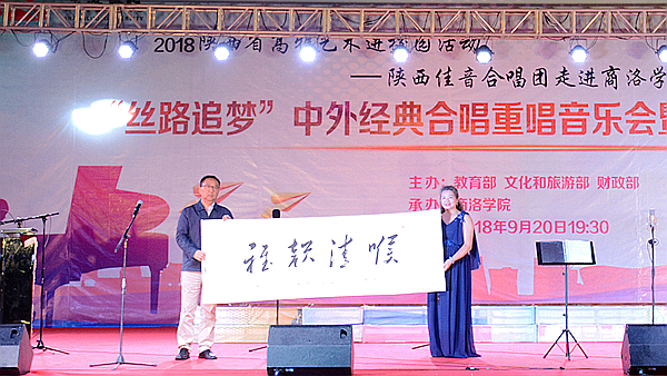 9月20日晚,由教育部、文化和旅游部、财政部主办的2018年“高雅艺术进校园”活动——陕西佳音合唱团“丝路追梦”中外经典合唱重唱专场音乐会暨我校迎新晚会在体育场隆重举办。党委书记龙治刚,校长范新会,党委副书记彭虎军,陕西佳音合唱团团长、指挥西安电子科技大学周伟教授,合唱团艺术总监西安交通大学马西平教授,合唱团导聆西安音乐学院艺术处处长刘宝玲出席活动。