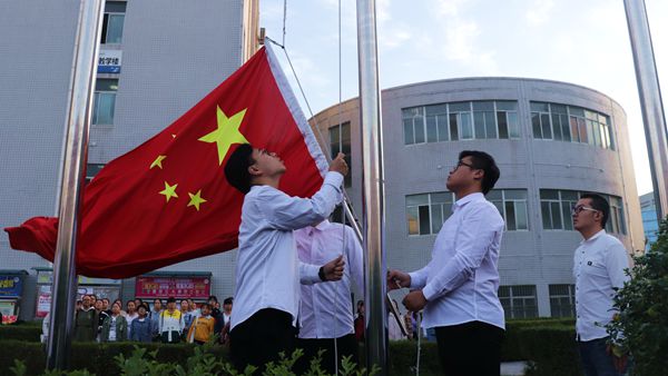 早晨七点整,晨曦微露,我校宣传部、马克思主义学院师生代表、青马班学员等100余人怀着无比崇敬的心情,在1号教学楼前整齐列队,举行“缅怀先烈、爱国奋斗”主题升国旗仪式。在雄壮的国歌声中,鲜艳的五星红旗冉冉升起,迎风飘扬,师生面向国旗行注目礼,向国旗表达最崇高的敬意。马克思主义学院学生代表吕波波作了国旗下演讲,她表示,一批又一批英烈用英勇、用热血为后世迎来新生,用生命、用无畏捍卫了民族尊严!作为一名当代大学生,要勿忘历史、不负英魂、爱国奋斗、砥砺前行,用青春、智慧和力量践行爱国理想,为祖国繁荣昌盛、民族复兴不懈努力!