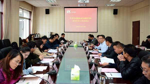 10月20日,在省教育厅的协调安排下,中央人民广播电台、中国青年报、中新社、中国教育电视台、中国教育网络电视台、国广国际在线、西部网、陕西网、陕西教育新闻网、搜狐网10家中省主流媒体组成采访团,专程来我校采访教育扶贫工作。省教育厅新闻办副主任任小朋带队采访。校党委书记龙治刚出席活动介绍学校情况并接受采访,副校长刘勇主持采访座谈会。