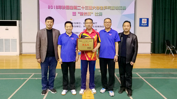 11月10日,由省教育厅主办,省学生体育协会、西安交通大学承办的2018年陕西省第二十三届大学生乒乓球锦标赛暨“校长杯”比赛在西安交通大学落下帷幕。由我校党委书记龙治刚、党委副书记彭虎军、副校长刘宝盈、副校长刘勇组成的代表队获得“校长杯”乒乓球团体赛第五名,是我校参加“校长杯”乒乓球比赛以来的最好成绩。