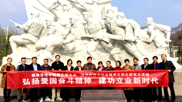 为深入学习贯彻习近平总书记关于弘扬爱国奋斗精神的重要指示,教育引导广大党员自觉践行爱国奋斗精神,做新时代的奋斗者,11月10日至17日,我校经管学院党总支、健康管理学院党总支教工党支部和继续教育学院直属党支部、机关一党总支第四党支部、化学工程与现代材料学院党总支分别组织党员及部分教职工开展了“弘扬爱国奋斗精神,建功立业新时代”主题党日活动。