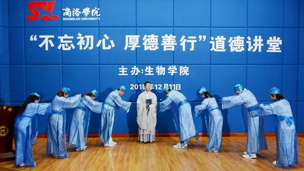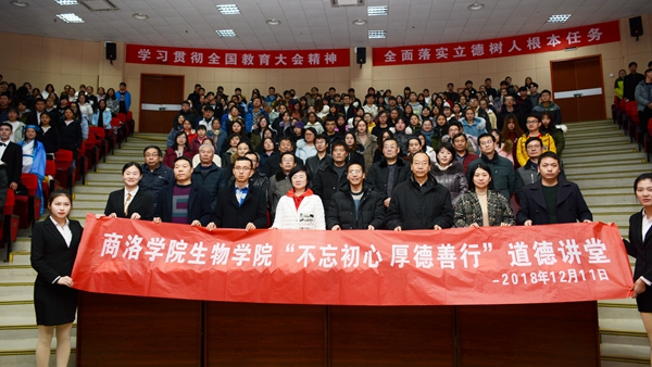 12月11日晚,生物学院在图书馆二楼报告厅举办了以“不忘初心 厚德善行”为主题的道德讲堂。宣传部、校团委、教务处相关人员,生物学院全体教师、学生代表及各学院团员代表参加了活动。