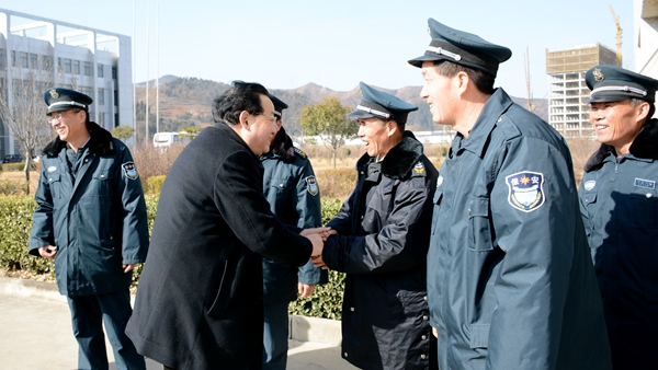 每到一处,校领导都与值班工作人员亲切握手并送上节日慰问金,对他们在春节期间坚守工作岗位表示感谢,祝愿他们在新的一年里工作顺利、幸福安康、万事顺意,叮嘱他们要安排好寒假和春节期间的工作和生活,确保广大师生度过一个欢乐祥和的春节,希望他们在新的一年持续发扬爱岗敬业优良传统,一如既往认真履职,为学校和谐稳定发展做好各项服务保障工作。