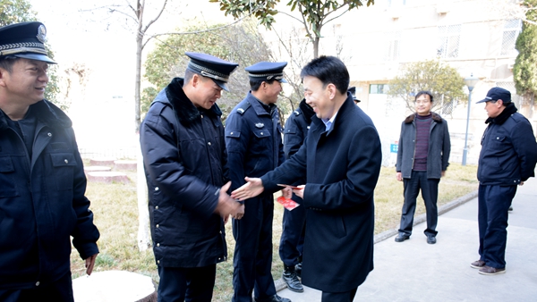 爆竹声声辞旧岁,春风送暖迎新年。2月4日,在农历除夕,副校长魏书堂、党委副书记彭虎军深入我校北新街校区和丹江校区,看望慰问寒假和春节期间仍然坚守在工作一线的教职员工,为他们送上节日问候和新春祝福。党委办公室·院长办公室、保卫处、后勤保障处、丹江校区管理处等相关职能部门负责人参加了慰问活动。