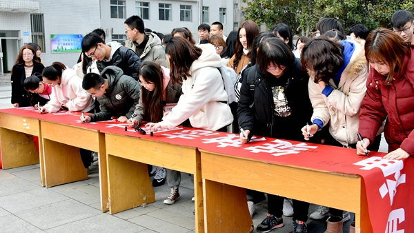 青年志愿者代表韩婕在启动仪式上发言,呼吁志愿者们从身边小事做起,用自身实际行动诠释永恒的雷锋精神。随后,全体志愿者们庄严宣誓并在横幅上签字许诺,决心积极参与到学雷锋志愿服务中,大力弘扬“奉献、友爱、互助、进步”的志愿者精神。