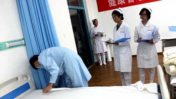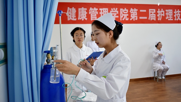 近日,我校举办第二届护理技能操作大赛,大赛特邀商洛市中心医院专业医师和护士长担任评委。教务处负责人及健康管理学院相关教师观摩了比赛。