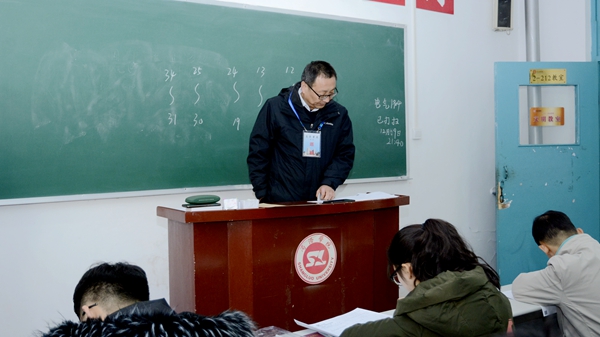 本学期期末考试于2019年12月30日至2020年1月10日进行,开考首日,校领导龙治刚、范新会、彭虎军、刘宝盈、刘勇、王新军在教务处和相关院部负责人的陪同下,分头深入考场,检查指导期末考试工作。