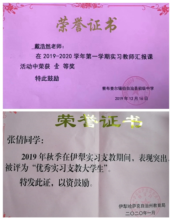 实习期间,我校支教学生始终心怀援疆支教的信念,立足支教工作岗位,以勇于担当的奉献精神,扎实的专业基础知识,饱满的工作热情和勤奋务实的工作作风,认真开展听课、备课、研课、上课以及学生辅导答疑等各项教学工作,组织开展形式多样的班级活动,积极参与实习学校的各项教学活动,展现了良好的精神风貌,受到了州、市、县各级教育局和支教学校的充分肯定,多名学生在学校赛教中获奖,20多名学生被伊犁州或县(市)教育局授予 “优秀实习支教大学生”荣誉称号。当地教育部门和各实习学校希望我校继续选派优秀学生赴疆支教实习,为新疆基础教育事业发展提供更多的师资人才力量。