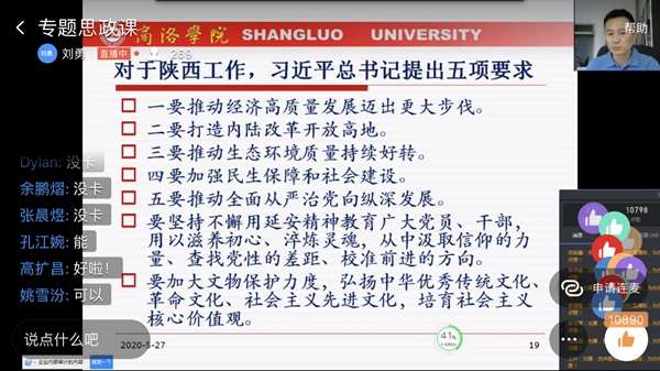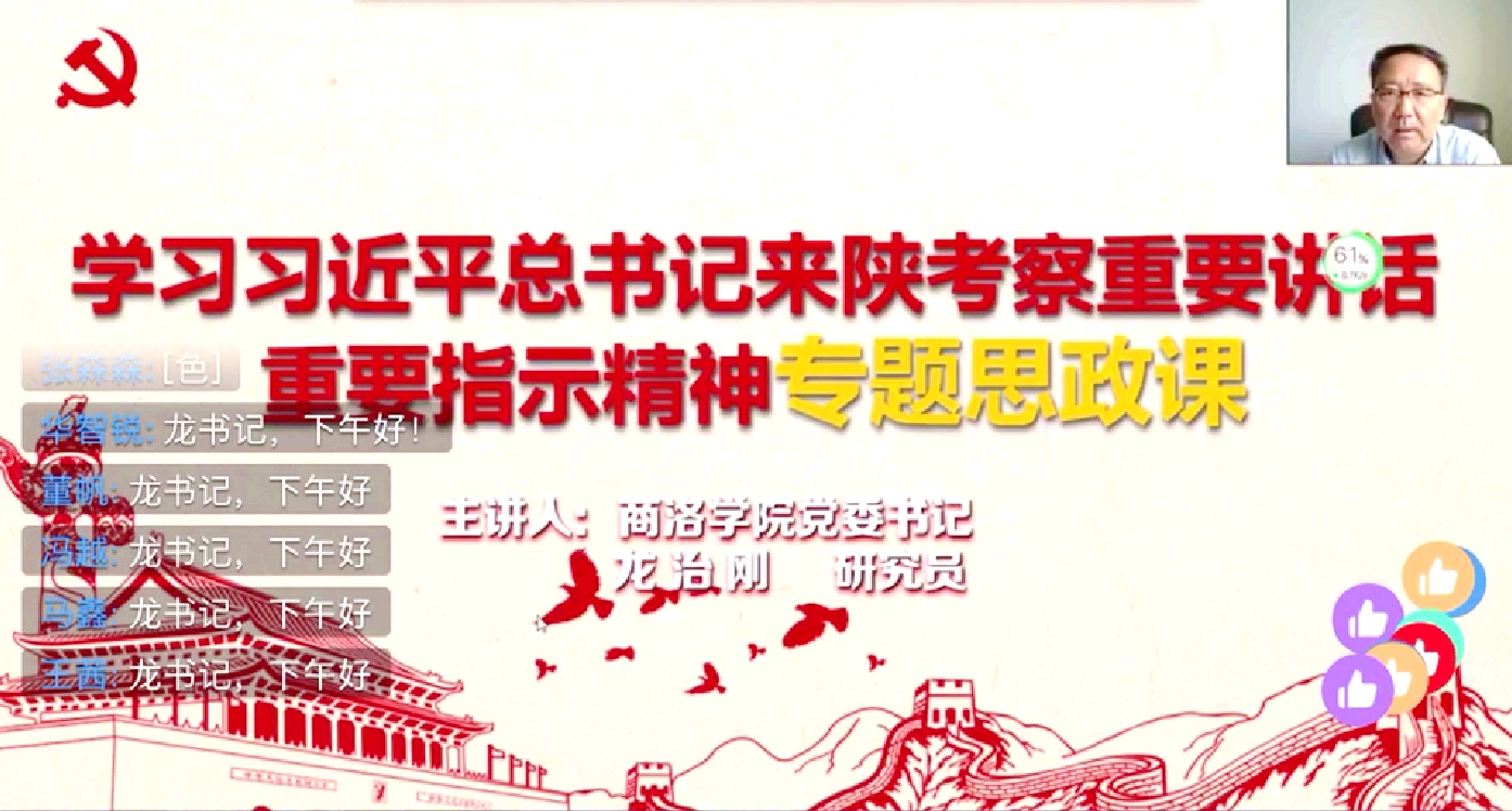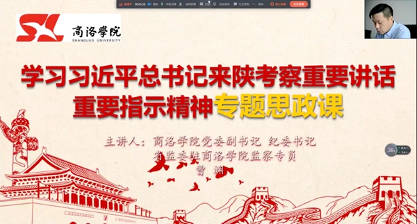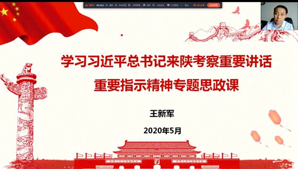 4月20日至23日,习近平总书记来陕考察并发表重要讲话,为陕西谱写新时代追赶超越新篇章鼓舞了士气、指明了方向,在全省人民群众中引发了热烈反响。学习好、宣传好、贯彻好习近平总书记重要讲话重要指示精神,是当前和今后一个时期全校的首要政治任务。5月27日,按照校党委的统一安排,我校7位校领导与2000余名青年学生“云端”共聚,以线上专题思政课的形式把学习习近平总书记来陕考察重要讲话重要指示精神引向深入,在全校上下掀起新一轮的学习热潮。