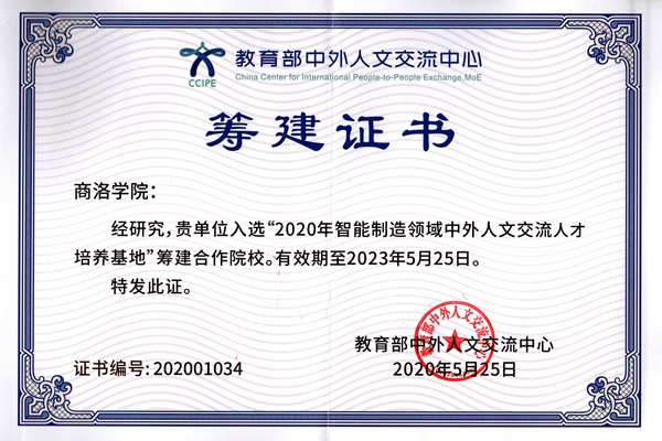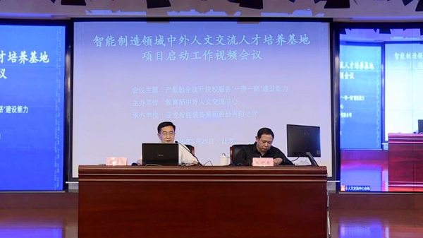 近日,教育部“智能制造领域中外人文交流人才培养基地项目”启动工作视频会议暨“产教融合提升院校服务‘一带一路’建设能力”主题会议在北京举行。本次项目启动工作会以线上视频形式进行,我校作为智能制造领域中外人文交流人才培养项目2020年第二批筹建院校在线参加了会议。会上,教育部中外人文交流中心主任杜柯伟为项目入选院校在线“云授牌”并颁发筹建证书。