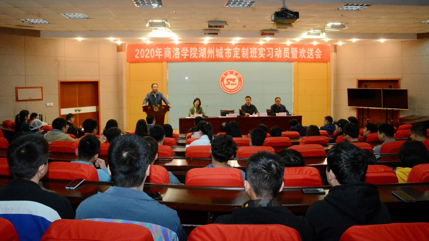 会上,龙治刚向即将奔赴实习岗位的学生送去美好祝愿和殷切叮嘱。他向大家介绍了湖州的地理位置、生态环境、历史人文、经济社会发展状况及我校与湖州市建立校地合作发展模式的具体情况及合作进程,分享了自己大学时期的实习经历及前往湖州市开辟实习就业基地的见闻感受,勉励大家要以良好的精神风貌和严谨的工作作风,全身心投入到即将到来的实习工作中,用自己的热情和努力,把在湖州的时光变成生命中最美好的“闪亮日子”。他向全体实习学生提出四点要求:一是珍惜机会,明确目标。要珍惜此次实习机会,尽快转变角色,主动适应环境,明确实习目的,努力将学到的理论知识运用到实践当中,不断培养自身综合能力,提高自身综合素质,为毕业后顺利走向社会打下坚实基础;二是勇于实践,增长才干。实践出真知,历练方成长,要在实践中把所学知识转化为应用能力,在社会这所大学中全面提高自我、检验自我、修正自我、完善自我,不断提升专业技术和职业技能,明确职业发展愿景,努力成长为德智体美劳全面发展的复合型、应用型人才;三是自尊自爱,不辱使命。实习中要严以律己,宽以待人,学会学习、学会做事、学会做人,不仅要有“智商”,更要有“情商、爱商和心商”,不断提高自身思想道德品质、团队协作精神、社会适应能力,以良好的综合素质和专业能力,展示商院莘莘学子的良好形象;四是安全第一,生命至上。要时刻谨记“安全第一”的底线原则,牢记学校的嘱托和期盼,增强安全防范和自我保护意识,做到平平安安去、顺顺利利回,确保圆满完成此次实习任务。