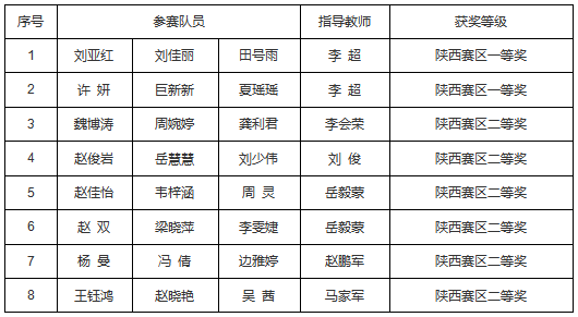 2020年全国大学生数学建模竞赛结果揭晓。我校参赛队共获得陕西省赛区一等奖2项、二等奖6项,系我校历年来获奖等级最高、奖项最多的一次,实现了新的突破。