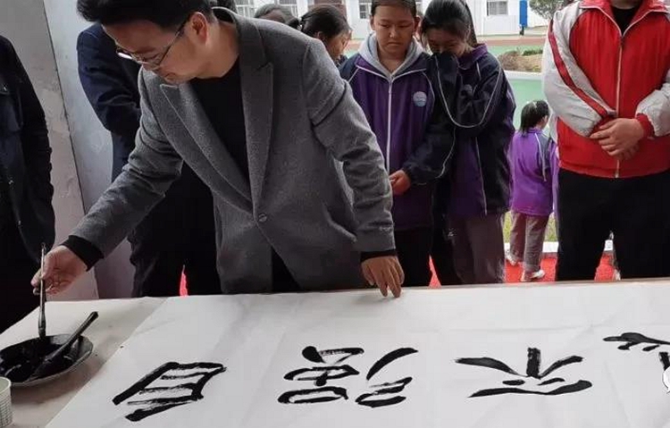 ——书法美术展示,实践以美育人。艺术学院教师余昭为洛南县古城镇中心小学、三要中学学生举办了书法讲座和美术作品展,他从笔画、字型、结构、神韵等方面讲解了毛笔书法的基础知识,现场示范毛笔书法的用笔技巧并捐赠了自己的书法作品。此外,他还展示并讲解了我校学生优秀素描作品30余幅。活动引导青少年在艺术作品中发现美,感受美,增强了他们对毛笔书法、传统文化、以及美术作品的艺术感知,培养了他们对艺术作品鉴赏能力和审美素养,生动践行了“以美育人,以文化人”。