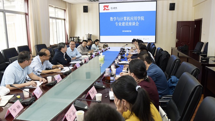 为进一步推进一流专业建设,9月23日,数计学院邀请教育部高等学校数学类专业教学指导委会委员、西安交通大学数学与统计学院院长赵彬教授来校开展专业建设座谈,对数计学院专业建设进行指导。副校长刘宝盈出席座谈会并致辞,党委委员、数计学院院长李超主持座谈会。数计学院党政负责人、各系(部)主任、实验室主任、教师代表参加座谈。