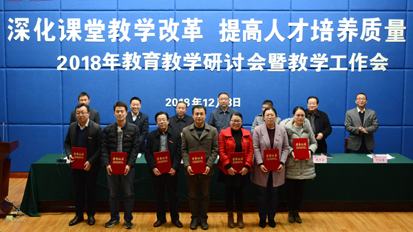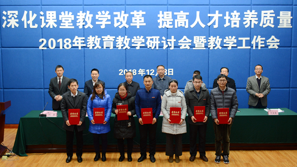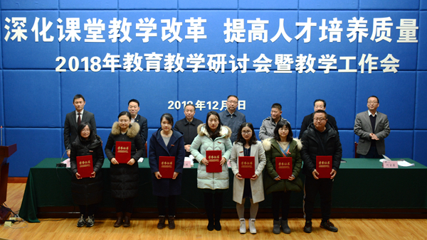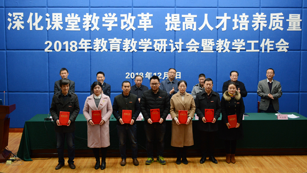 大会对我校2018年度优秀教案及优秀电子课件、实习优秀指导教师、2018届校级优秀毕业论文指导教师、第四届“互联网+”大学生创新创业大赛校赛获奖教师、2018年度青年教师教学技能竞赛获奖教师、首届课堂教学创新大赛获奖教师、2018年教育教学研讨会优秀论文及优秀组织单位进行了表彰,刘宝盈宣读了表彰决定。