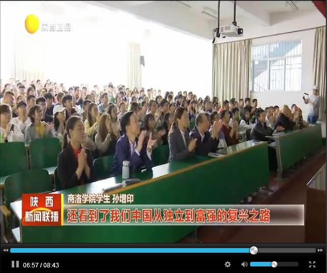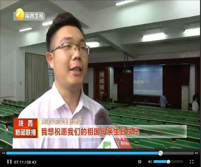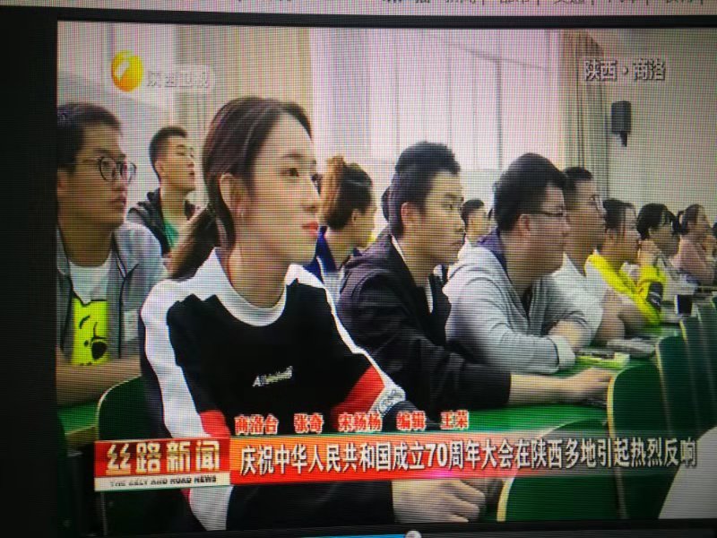 陕西电视台《陕西新闻联播》《丝路新闻》频道于10月3日,商洛电视台《商洛新闻联播》频道于10月1日,分别对我校师生集体收看庆祝中华人民共和国成立70周年大会、阅兵式、群众游行直播情况进行了报道。收看现场,师生们激情澎湃,教室里不时响起热烈掌声,大家都为祖国的日益强大感到无比振奋和自豪。节目组现场采访了我校党委副书记彭虎军、学生许文佳和孙增印。彭虎军说:今天是祖国母亲70岁生日,内心非常高兴,也非常激动,刚才聆听了习近平总书记的重要讲话,觉得很受鼓舞,坚定了信心,催人奋进。许文佳说:给我印象最深刻的是飞机的表演,我们已经不是当时刚开国典礼时仅存的那几个飞机,我们现在有高科技的军事装备,我们的国家也越来越强大,在世界上展示着大国的风采。孙增印说:在这个特殊的日子,我想祝愿我们的祖国母亲生日快乐,祝愿我们的国家更加繁荣昌盛。