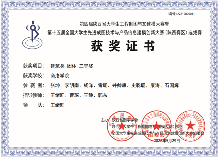 在不久前结束的第四届陕西省大学生工程制图与3D建模大赛暨第十五届全国大学生先进成图技术与产品信息建模创新大赛(陕西赛区)上,我校城乡规划与建筑工程学院派出15名参赛选手组成的团队,与省内57支队伍的730余名选手进行了激烈角逐,取得单项一等奖1项、二等奖2项、三等奖7项,并荣获建筑团体三等奖。这是建工学院师生参加该项比赛以来获得的最好成绩。