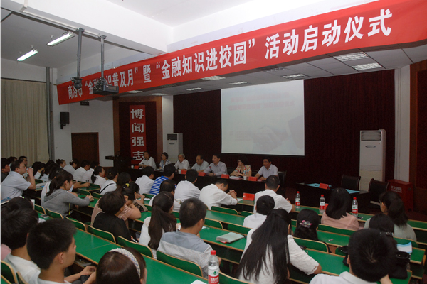 9月11日下午,商洛市“金融知识普及月”暨“征信知识进校园”活动启动仪式在我校举行,本次活动由我校与人民银行商洛市中心支行联合举办。校党委副书记左晓民,人民银行西安分行征信处处长章红、法律处调研员张晓兰,商洛市政府副秘书长全玉民,人民银行商洛支行党委书记、行长马小明,党委委员、副行长郭增战及各商业银行相关负责人,各系辅导员、贷款学生代表参加了启动仪式。仪式由我校学生处处长石启英主持