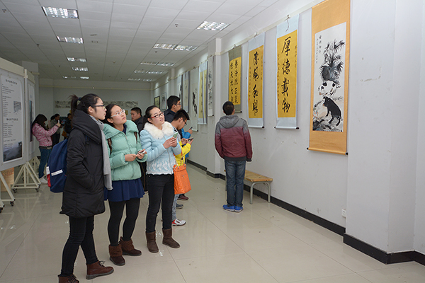 为纪念毛泽东同志诞辰120周年,抒发我校师生对毛主席的深厚感情,歌颂党的丰功伟绩,促进了书画爱好者之间的交流,12月10日上午,由党委宣传部、艺术系党总支主办的刘宇昭诗词书画作品展在艺术系展厅开幕。校党委副书记左晓民,商洛市民间艺术家协会主席田野,省、市书画名家李子贤、魏振中、崔来隽、崔学民、张中惠及我校艺术系师生和书画爱好者出席了开幕式