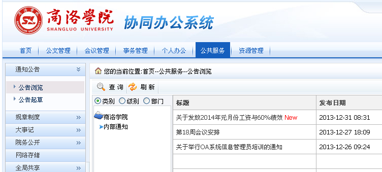 经过前期紧张的筹备工作,12月27日,我校OA系统开始启用,进行为期两个月的试运行。试运行期间,纸质公文与OA系统电子公文可并行流转,自2014年3月1日起,我校公文将全部通过OA系统办理和发布,一般不再使用纸质公文