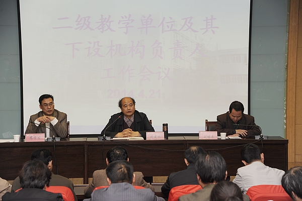 4月21日,学校召开二级教学单位及其下设机构负责人工作会议,校长刘建林出席会议,安排部署下一阶段教学工作,并对各单位负责人提出了明确要求。教务处处长刘端森、干部人事处处长高荣发,各二级教学单位及其下设机构负责人参加会议