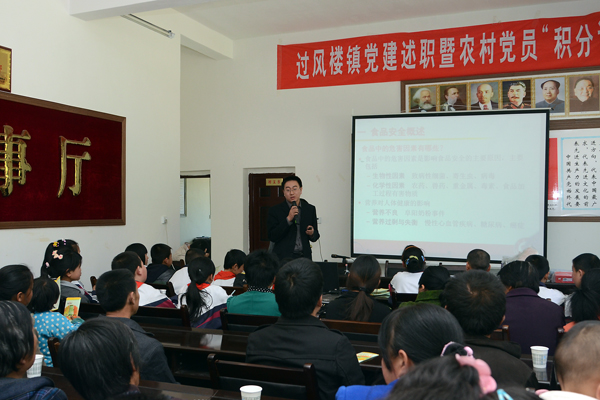 4月11日下午,在商洛市商南县过风楼镇白玉沟村的党员活动室里,当地村民和柳树湾小学师生共100余人听取了我校专家郭耀东博士所作的食品安全知识科普讲座,并领到了免费的科普书籍与宣传资料。这是商洛市与我校联合举办的“食品安全科普进校园、进社区”系列活动的一部分。商洛市科协副主席闵利民、我校科研处处长李继高、生物医药工程系主任王新军亲临现场并与村民们互动交流