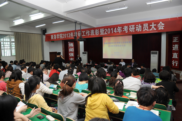 4月17日下午,我校召开2013年考研工作表彰暨2014年考研动员大会,对参加2013年全国硕士研究生考试且初试成绩达到国家分数线的206名学生及所在系予以表彰奖励,并对2014年考研工作作了动员和部署。校领导张继良、张景书、左晓民、刘建林出席大会并为考研工作先进集体和个人颁奖